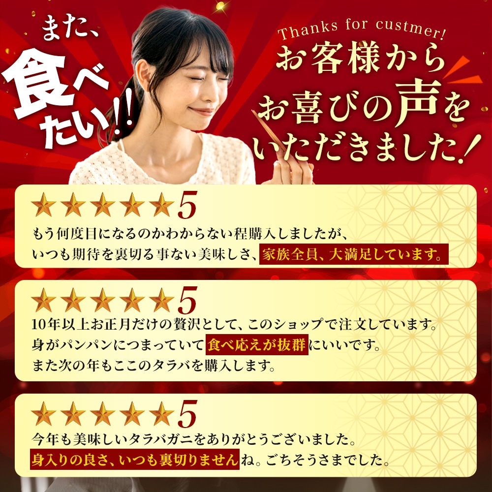 - ボイル冷凍 タラバガニ足 3kg前後(3-6肩9-18本)