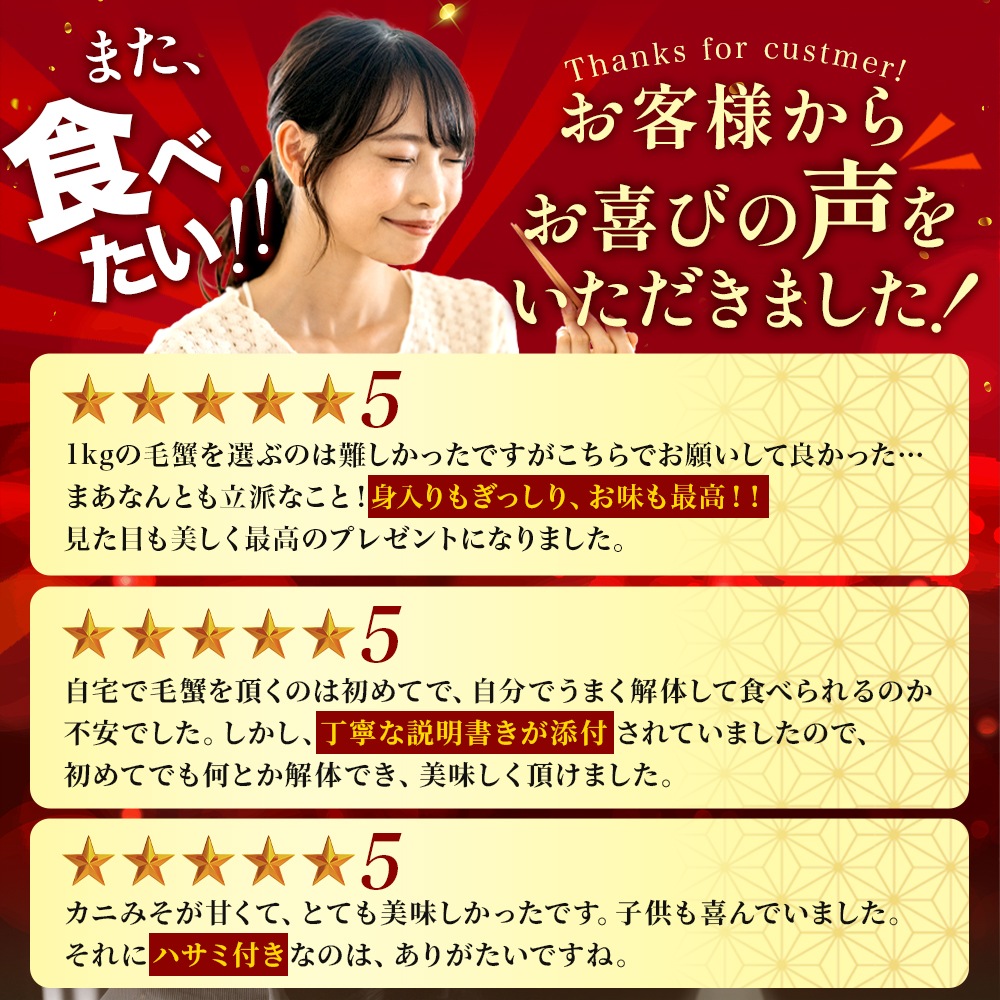 - ボイル冷凍 毛蟹姿 800g前後×1尾