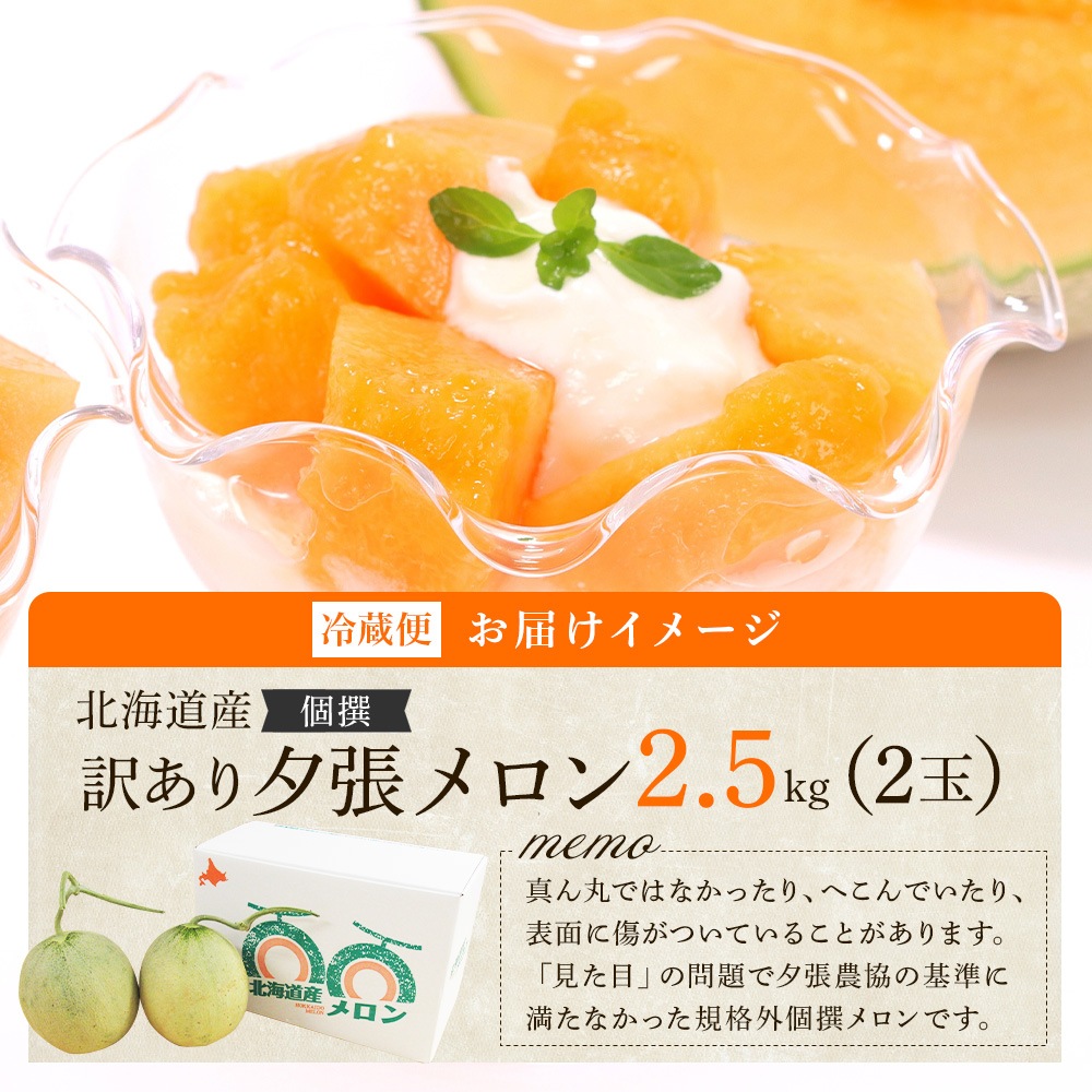 訳あり 北海道産 夕張メロン 個撰 2玉 計2.5kg前後 /果物/メロン/フルーツ/北国からの贈り物/送料無料 ◆出荷予定:6月中旬-8月中旬※日時指定不可