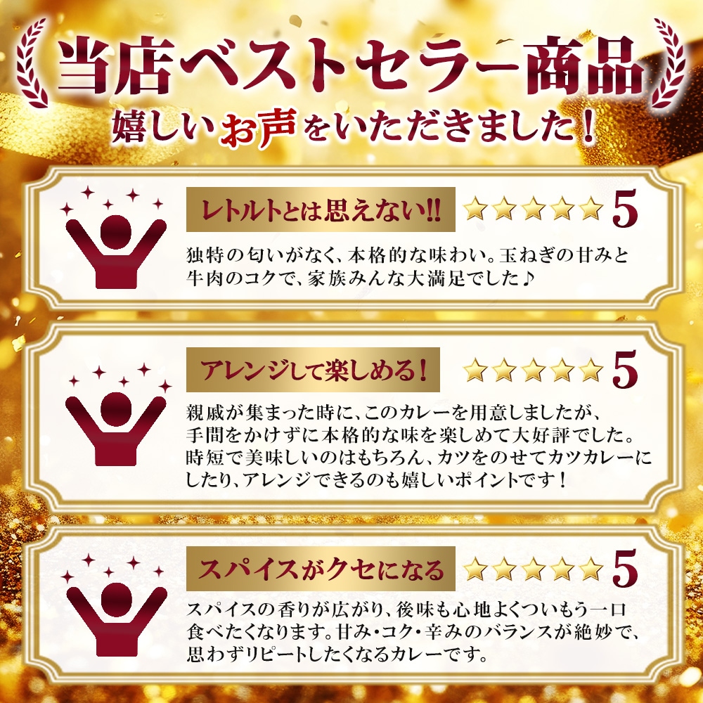 このカレーの特徴は、2種類の炒め玉ねぎを使用して甘味とコクを引き出していること。さらにじっくり煮込んだ牛肉の濃厚な旨味が加わり、深みのある味わいに仕上がっています。20種類以上のスパイスを絶妙にブレンドしており、まろやかで香り高い中辛の味わいは、老若男女問わず楽しめます。