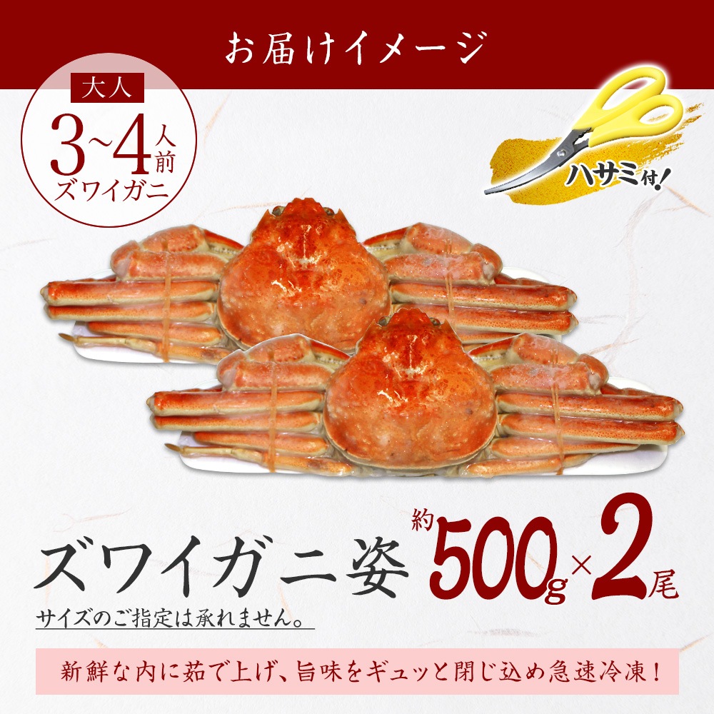 - ボイル冷凍 ズワイガニ姿 500g前後×2尾