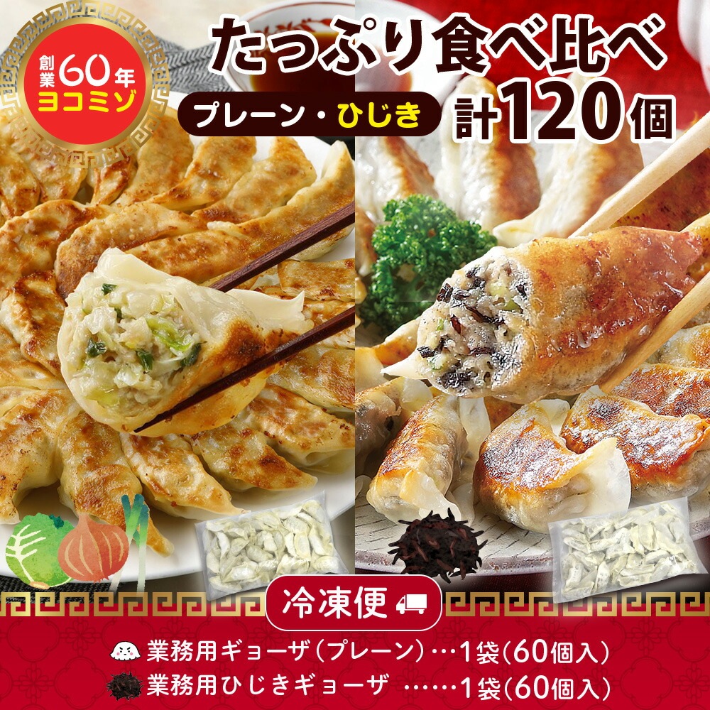 業務用 冷凍餃子 (冷凍餃子&ひじき餃子各60個セット) (10人前)ヨコミゾ 餃子 冷凍 国産 ぎょうざ パーティー 中華 お取り寄せ餃子 国産野菜 点心 中華惣菜 餃子パーティー 大人数 冷凍餃子 ギョーザ 年末 お歳暮 餃子 食べ物 送料無料