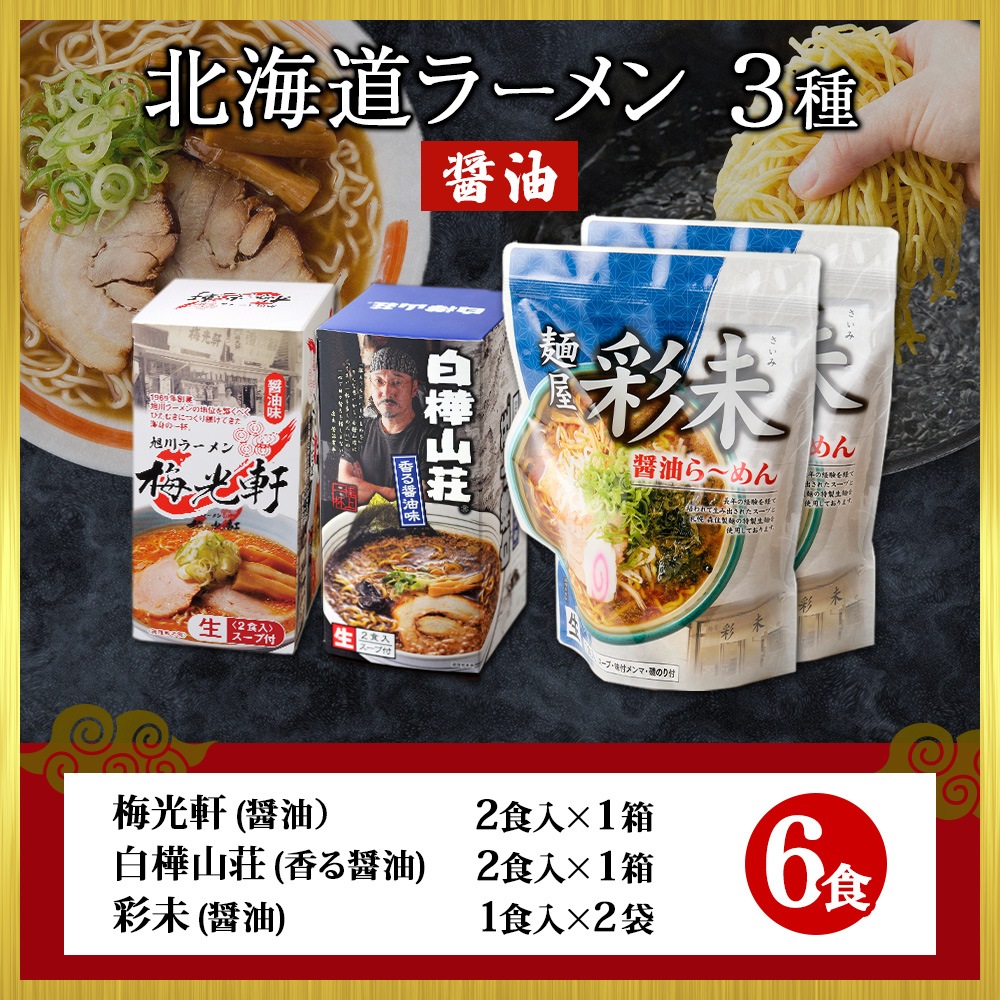 - 北海道ラーメン 醤油 3種 6食セット