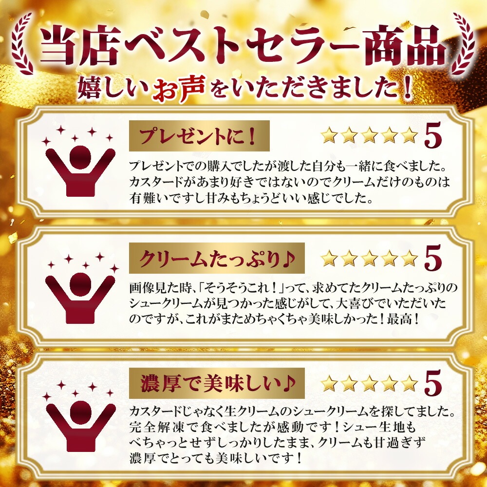 シュー生地は、外はさっくり、中はふんわりと焼き上げ、贅沢にたっぷり詰め込まれたクリームとの相性は抜群。