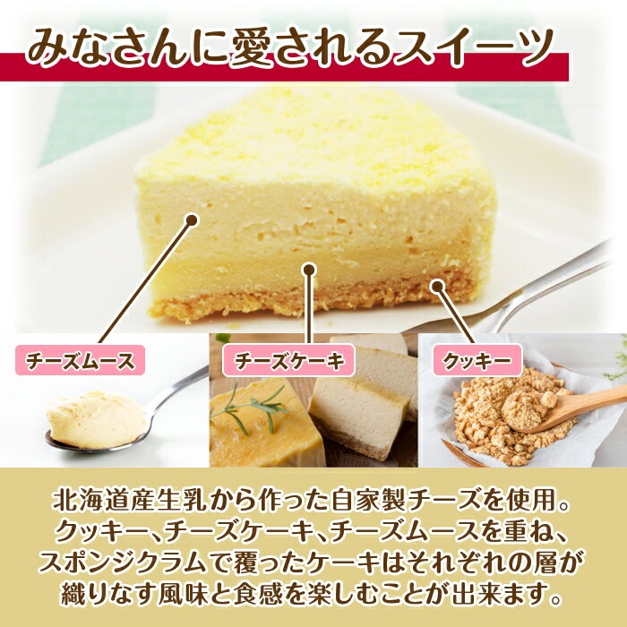 チーズケーキとチーズムースをどちらも味わえる贅沢なケーキです。