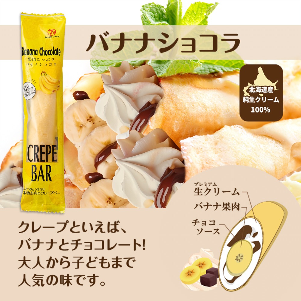 生地と相性抜群な、北海道産純生クリームを使用したクレープバーです。