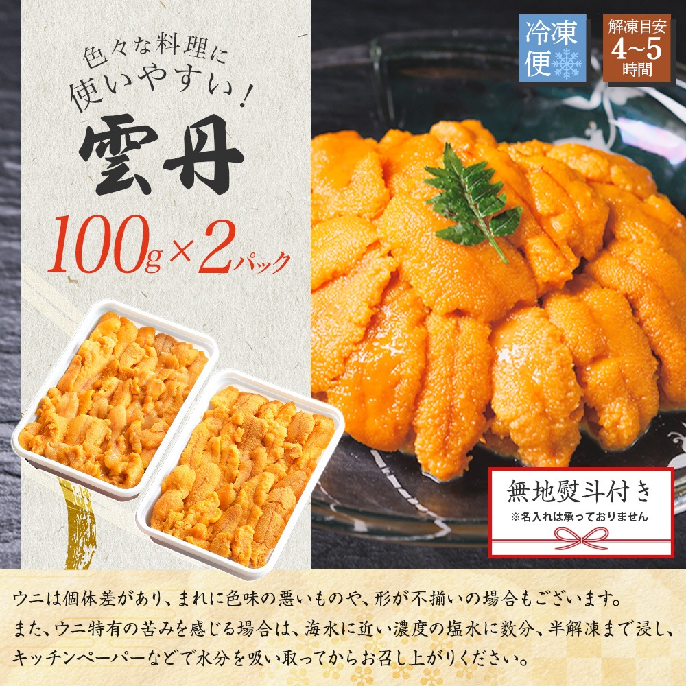 うに 100g 2個 うに 海鮮 ウニ チリ産 冷凍 200g 4人前 雲丹 丼 刺身 うに お取り寄せグルメ 雲丹 ブランチ ウニ 冷凍 セット ギフト 食べ物 ギフト 雲丹 グルメ 海鮮