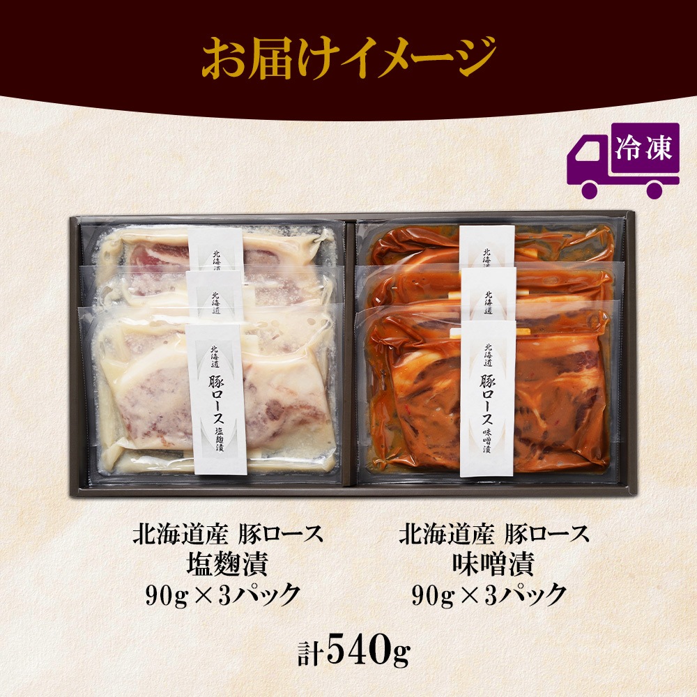 北海道産 豚ロース 味噌漬&塩麹漬 90g×各3 豚肉 豚 肉 ロース 国産 味噌 塩?跫 簡単レシピ 冷凍 ギフト お取り寄せ バルナバフーズ 送料無料 北海道 札幌市 北国からの贈り物