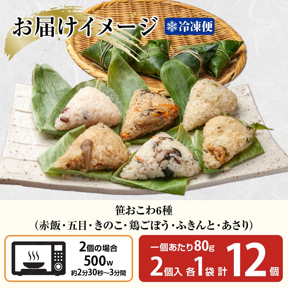- 笹おこわ 6種(赤飯/五目/きのこ/鶏ごぼう/あさり/ふきんと)各2個 計12個