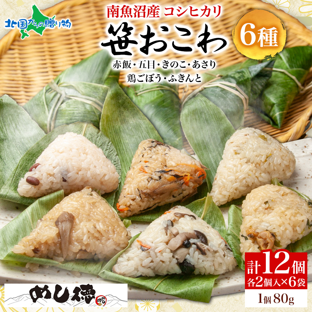 笹おこわ 笹 おにぎり 個別の味/6種セット(赤飯 五目 きのこ 鶏ごぼう ふきんと あさり)備蓄 おこわ 冷凍 魚沼産もち米 餅米 おむすび こがねもち 黄金もち 新潟県産 国産 米 めし徳 詰め合わせ 父の日 食べ物 お取り寄せグルメ 送料無料