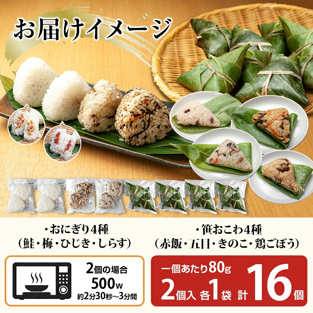 - おにぎり&おこわ8種食べ比べセット(おにぎり/鮭・梅・ひじき・しらす、おこわ/赤飯・五目・きのこ・鶏ごぼう)80g各2個 計16個