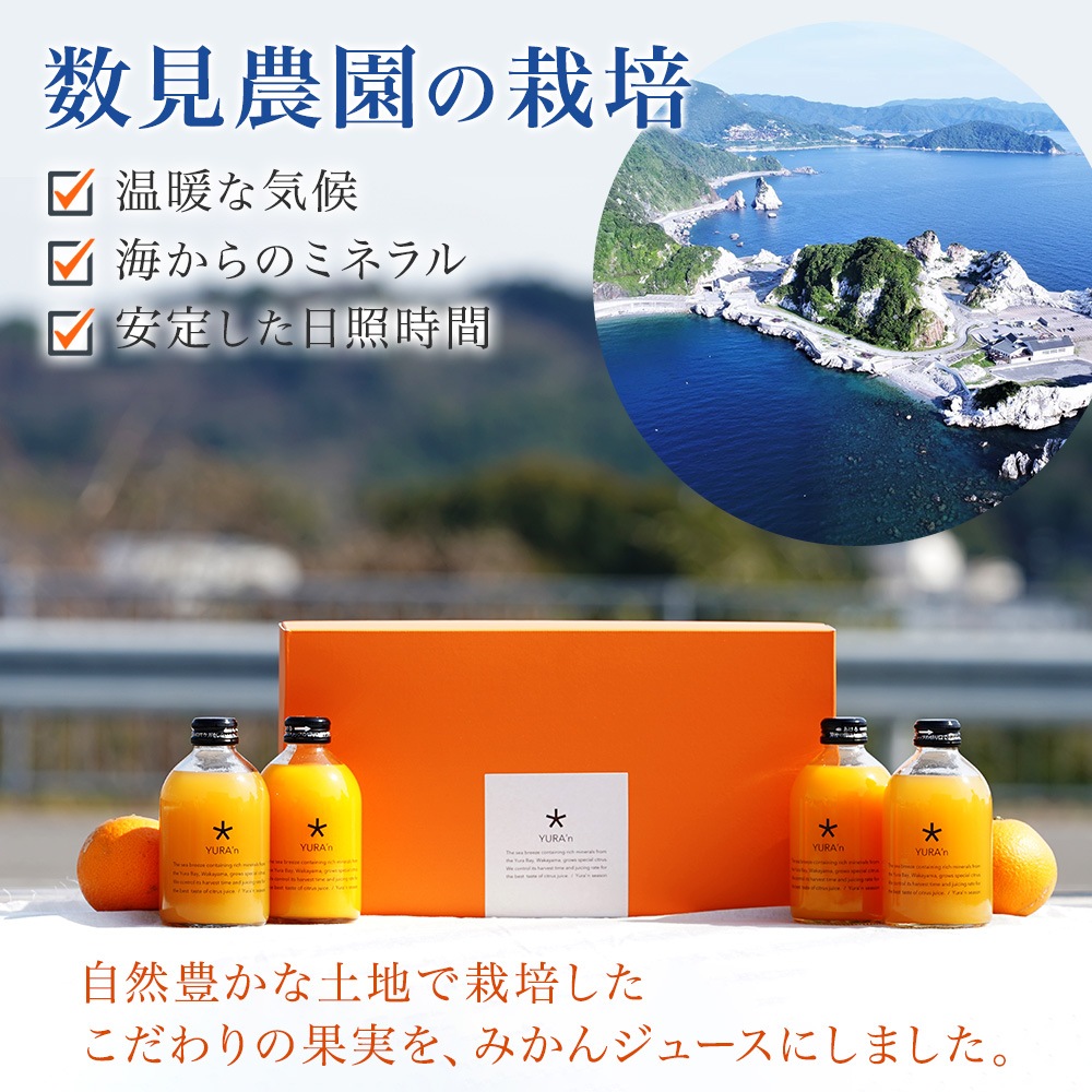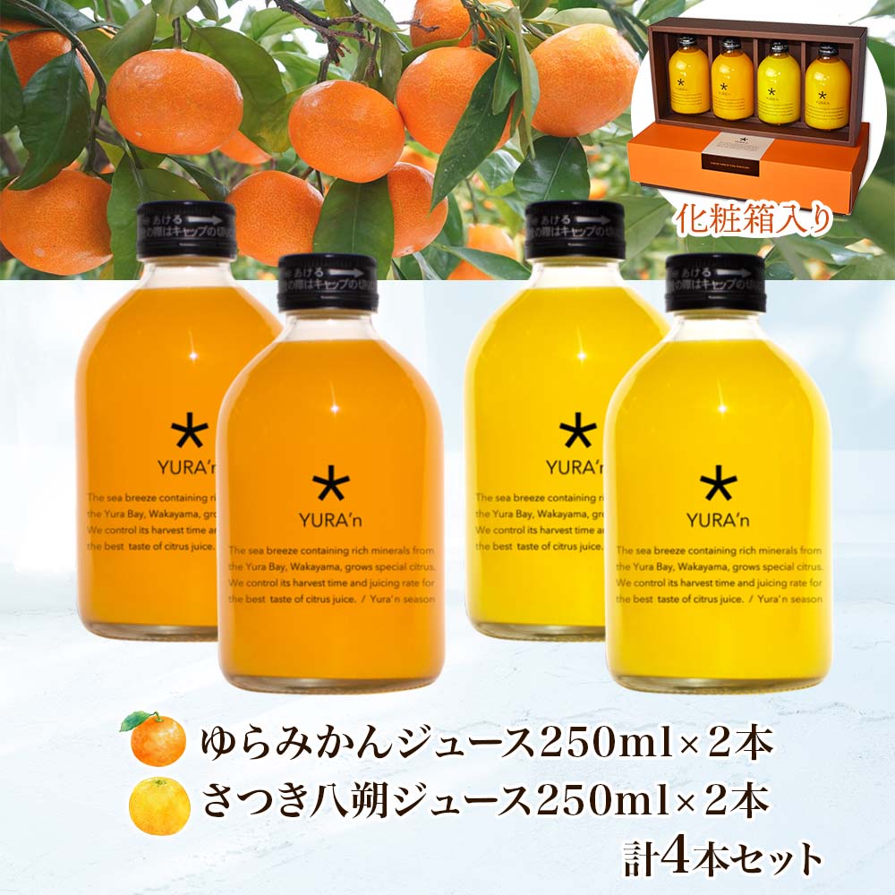 和歌山みかんジュース 2種 ゆらみかん 八朔 各2本 計4本 250ml 数見農園 生搾り みかんジュース 果汁100% 和歌山 みかん ミカン 蜜柑 はっさく オレンジジュース ストレート ジュース セット プレゼント ギフト 贈り物 送料無料