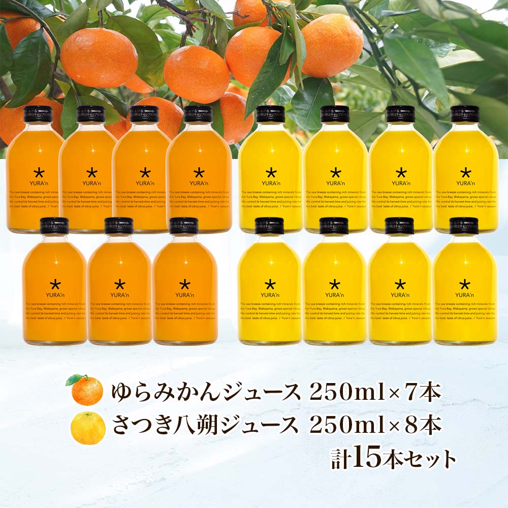 和歌山みかんジュース 2種 ゆらみかん 八朔 計15本 250ml 数見農園 生搾り みかんジュース 果汁100% 和歌山 みかん ミカン 蜜柑 はっさく オレンジジュース ストレート ジュース セット プレゼント ギフト 贈り物 送料無料