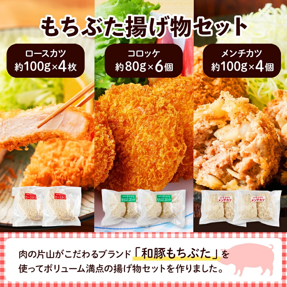 和豚もちぶた 揚げ物セット (ロースかつ、コロッケ、メンチ)【8人前 各2袋】 国産肉 ブランド豚 和豚 もちぶた もち豚 肉 ロースカツ ころっけ メンチカツ お惣菜 お弁当 オードブル 簡単 手軽 冷凍 小分け 詰め合わせ ギフト お取り寄せ 送料無料 肉の片山