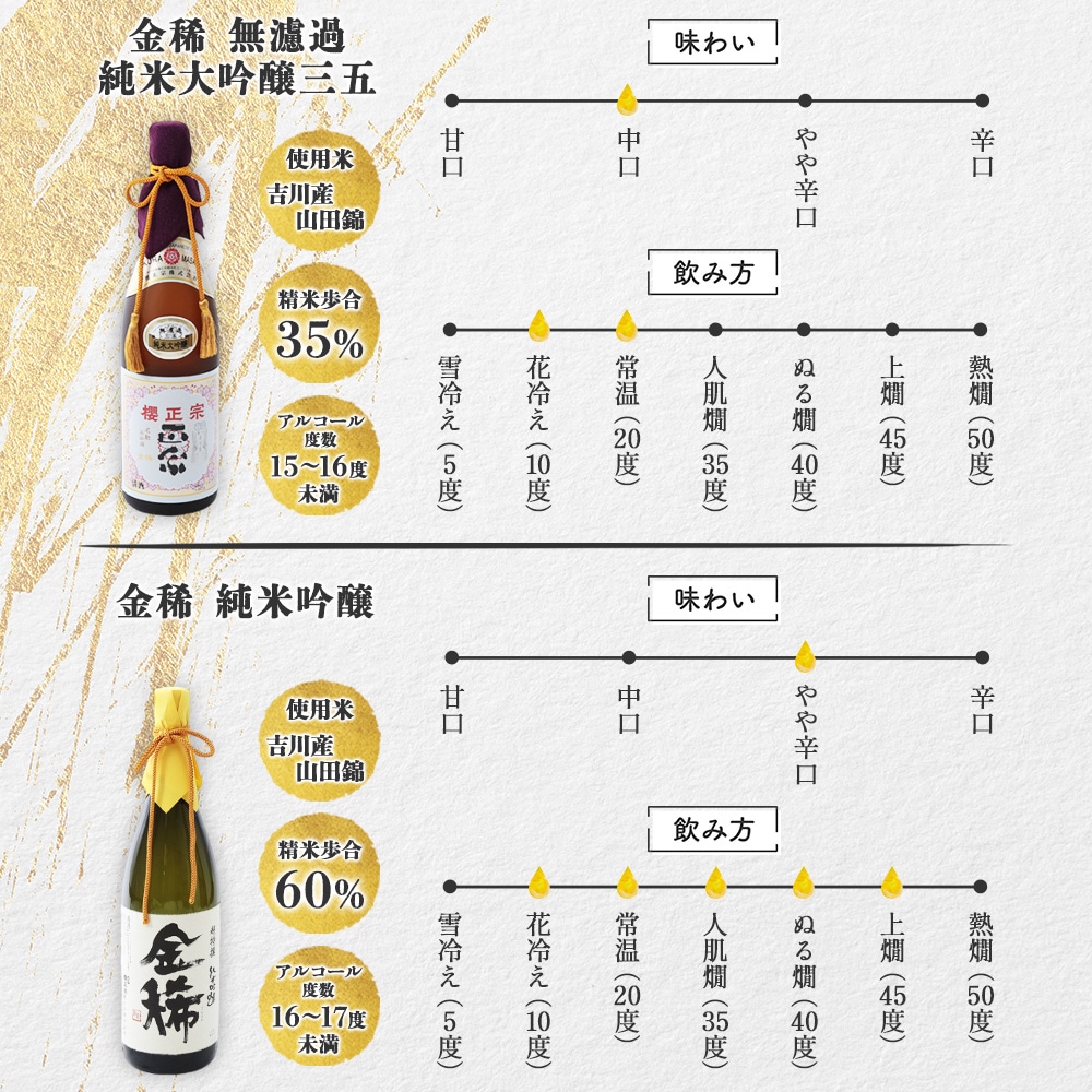 櫻正宗 金稀 無濾過純米大吟醸三五 純米吟醸 各720ml 2本 お酒 酒 日本酒 純米酒 大吟醸 山田錦 慶事 お祝い ハレの席 中口 やや辛口 常温 花冷え 雪冷え 人肌燗 ギフト 贈り物 人気 おすすめ 北国からの贈り物 送料無料 兵庫県 神戸市