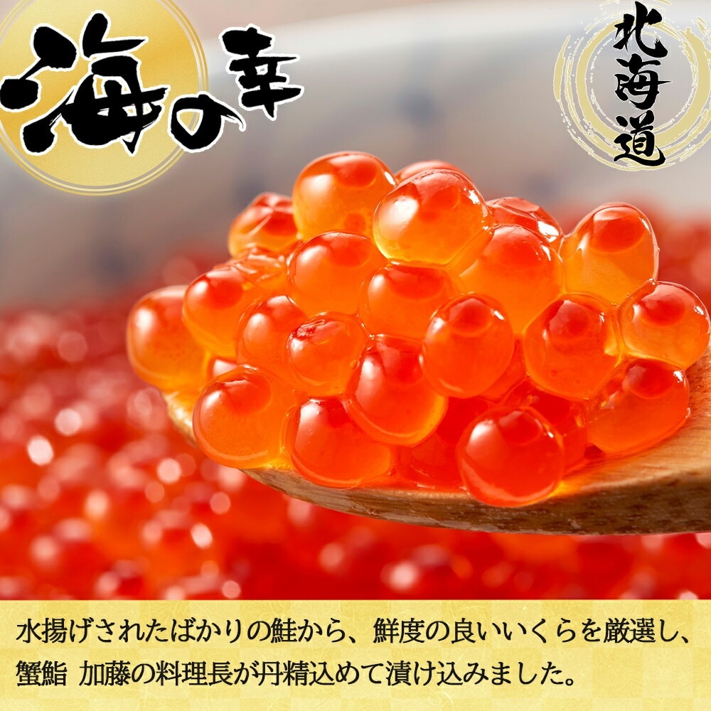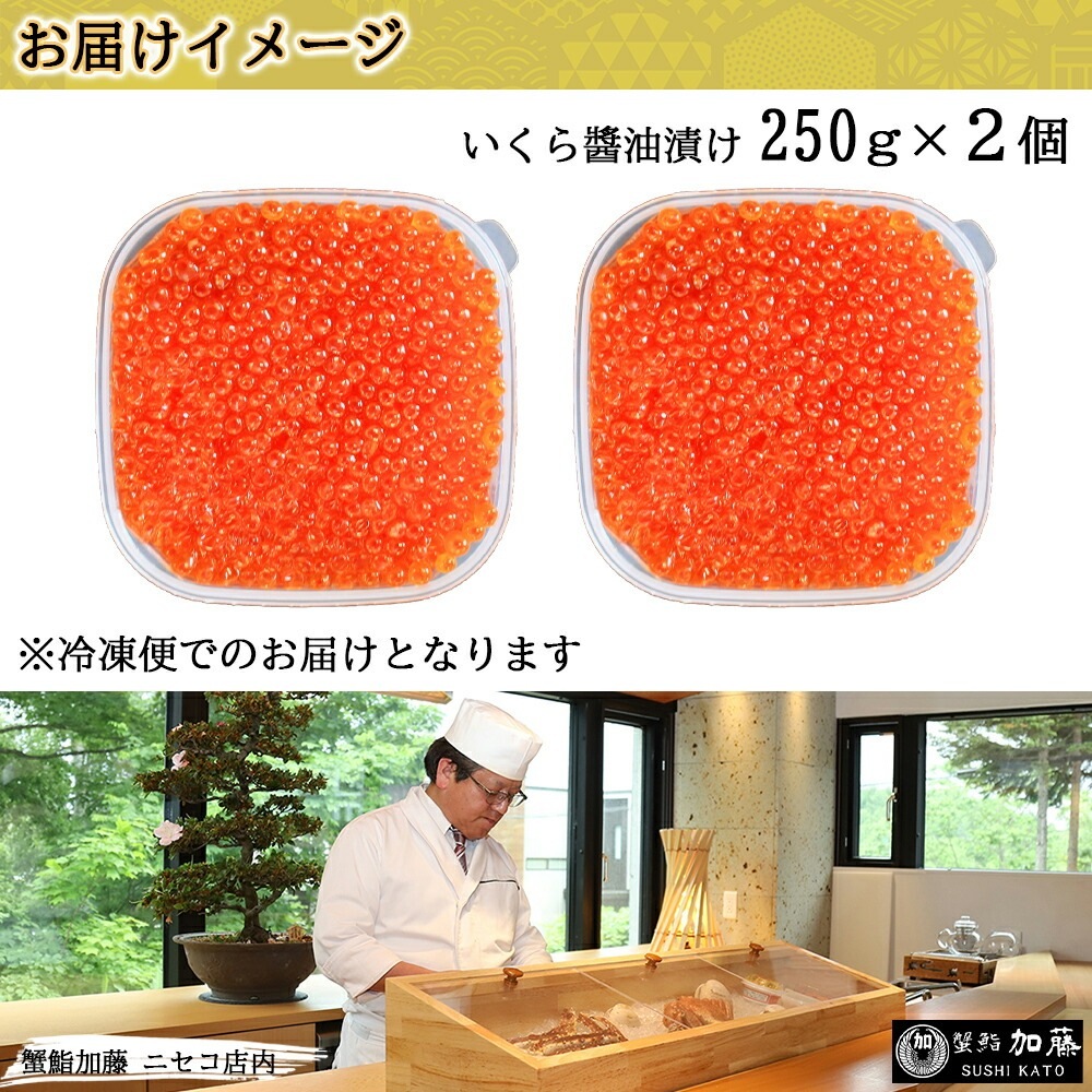お店で手作り!北海道産手作りいくら醤油漬 500g 蟹鮨 加藤 ニセコ店 自家製 手作り いくら醤油漬け 北海道 イクラ醤油漬け 魚卵 寒中見舞い バレンタイン チョコ以外 甘くない 海鮮 ギフト お取り寄せグルメ いくら醤油漬け 送料無料 北国からの贈り物