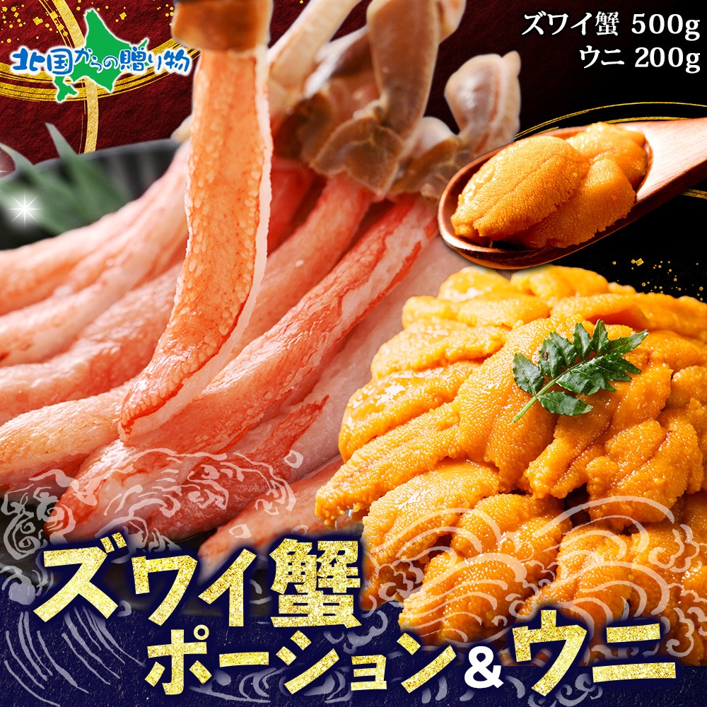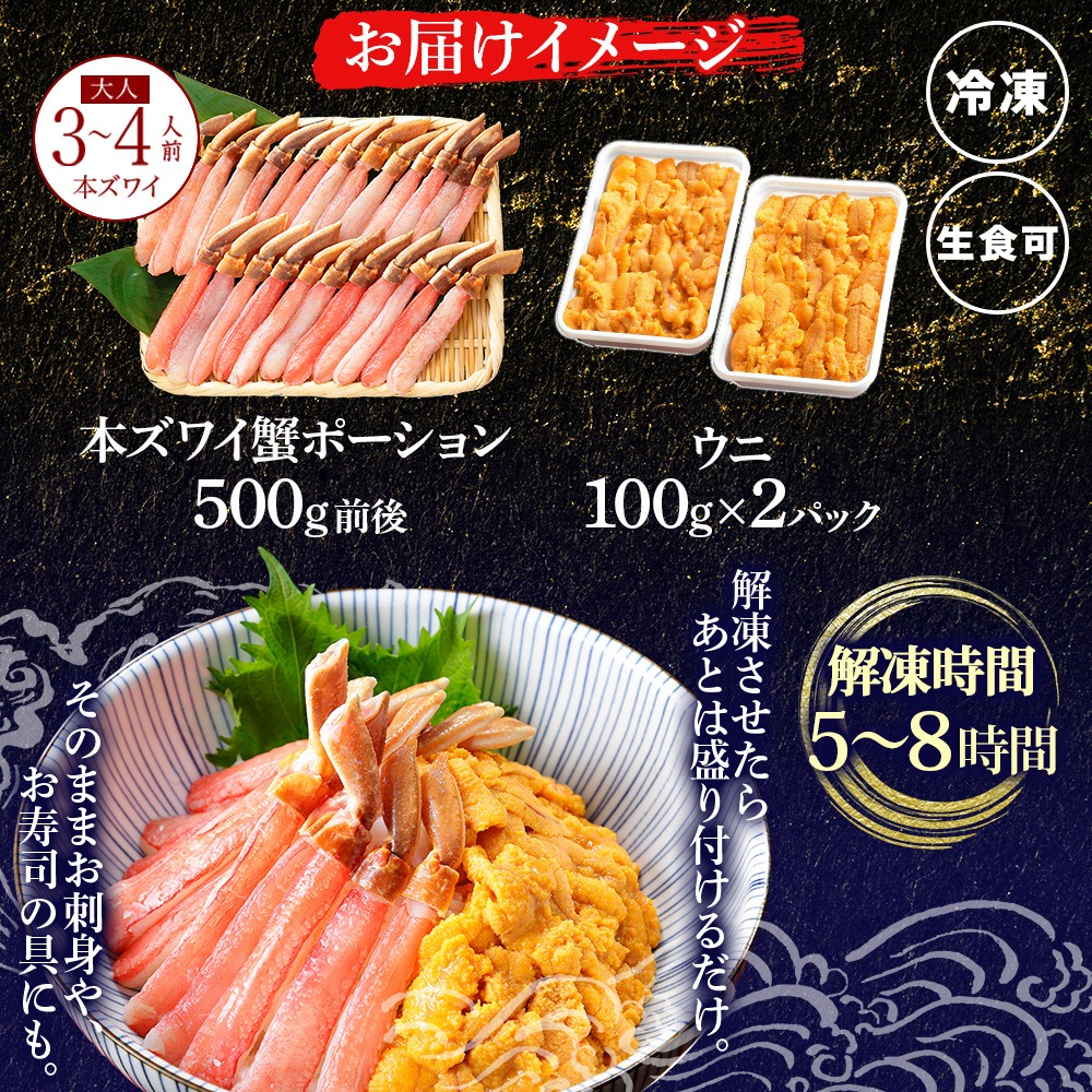 2種 海鮮丼 セット 3-4人前 カニ 蟹 かに ズワイガニ ポーション 500g前後 &ウニ チリ産 冷凍 うに 200g 誕生日 お取り寄せグルメ ギフト バレンタイン 甘くない チョコ以外 海鮮 北海道