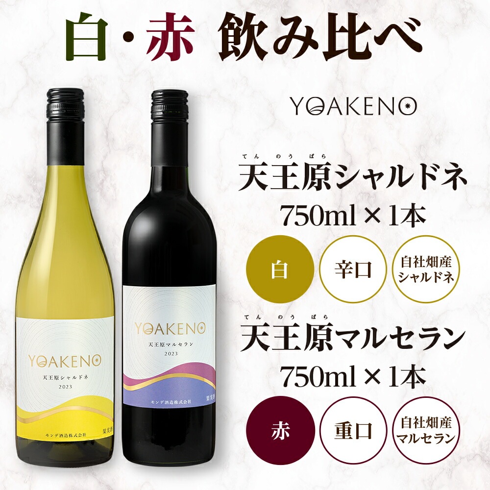 YOAKENO 白・赤ワイン飲み比べ|天王原シャルドネ・マルセラン 各1本 計2本