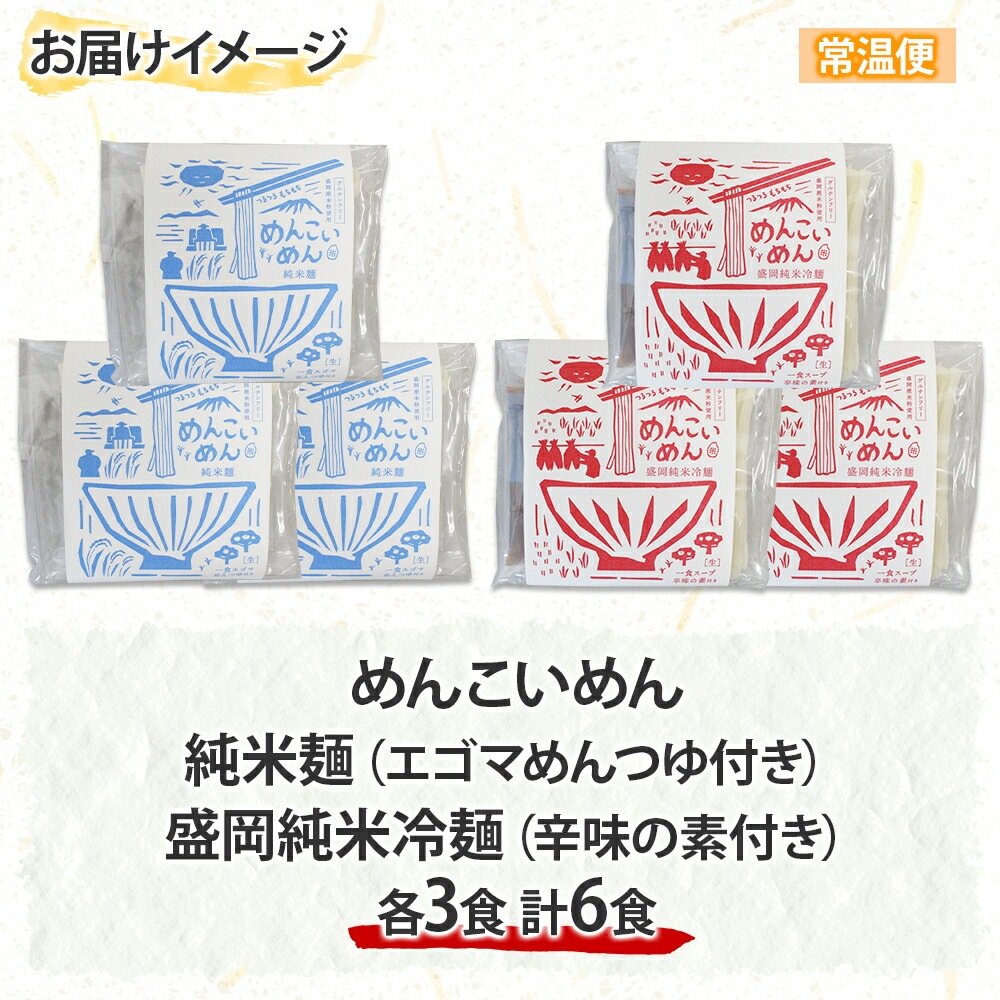 めんこいめん 2種 食べ比べ 計6食 Eセット 純米麺/純米冷麺 米粉麺 盛岡 冷麺 グルテンフリー 麺 米粉 めん お取り寄せ グルメ ギフト お土産 岩手県 盛岡市 ご当地 ラーメン 送料無料 北国からの贈り物