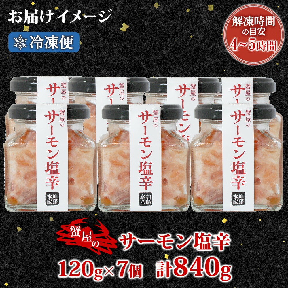 サーモン塩辛 120g (7個)北海道 小分け サーモン 塩辛 鮭 さけ サケ いくら 漬け 塩から しおから つまみ おつまみ アレンジ 海鮮 ご飯のお供 グルメ 冷凍 瓶 瓶詰め 酒の肴 おつまみ お取り寄せ グルメ ギフト プレゼント 送料無料 北国からの贈り物