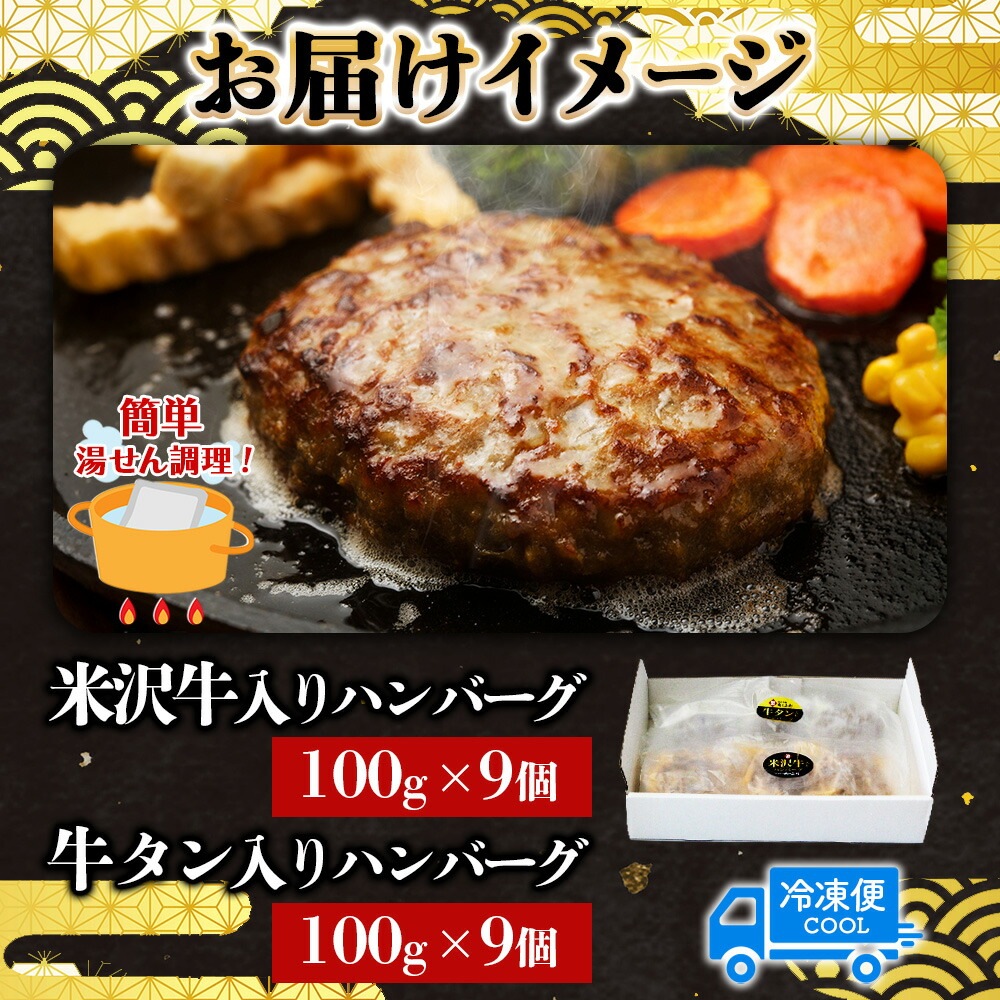 米沢牛入りハンバーグ 牛タン入りハンバーグ セット(各9個) 国産 牛肉 米沢牛 牛タン ハンバーグ 牛 豚 肉 冷凍 ハンバーグ 小分け 湯煎 湯せん 簡単調理 時短 贅沢 ご褒美 グルメ ギフト プレゼント エヌティエス 産地直送 送料無料 北国からの贈り物