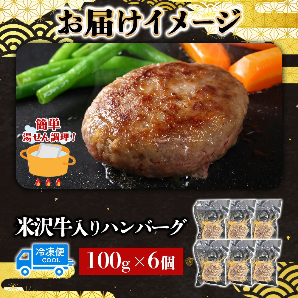米沢牛入りハンバーグ 単品(6個) 国産 牛肉 米沢牛 ハンバーグ 牛 豚 肉 冷凍 ハンバーグ 小分け 湯煎 湯せん 簡単調理 時短 贅沢 ご褒美 お取り寄せ グルメ ギフト プレゼント エヌティエス 産地直送 送料無料 北国からの贈り物