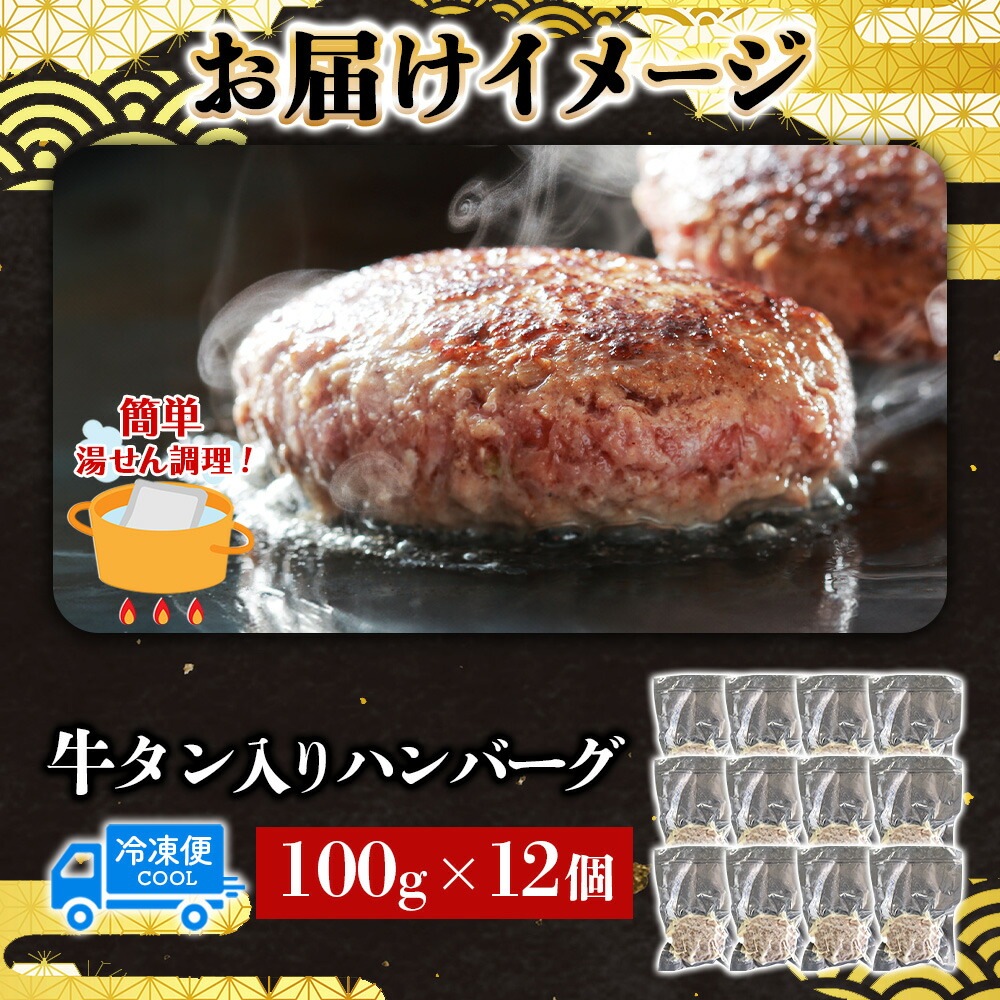 牛タン入りハンバーグ セット(12個) 牛タン ハンバーグ 牛 豚 肉 冷凍 ハンバーグ 小分け 湯煎 湯せん 簡単調理 時短 贅沢 ご褒美 お取り寄せ グルメ ギフト プレゼント エヌティエス 産地直送 送料無料 北国からの贈り物