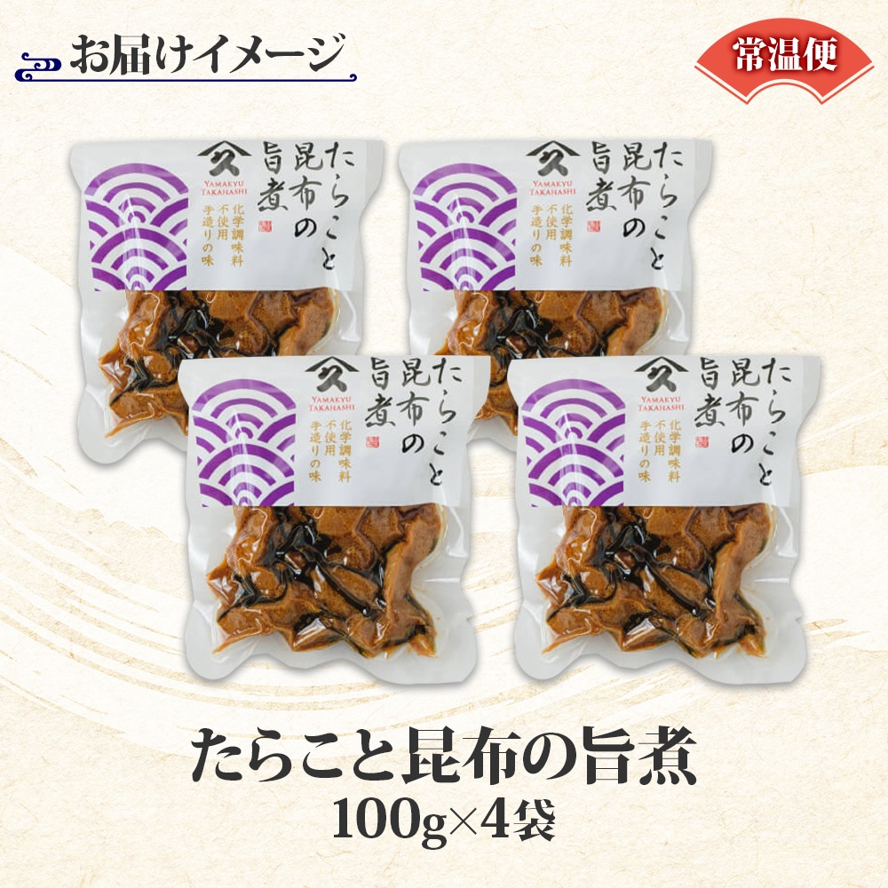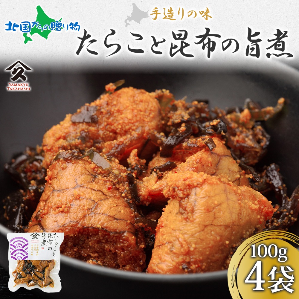 北海道 たらこと昆布の旨煮 100g 4袋 北海道産 たらこ 鱈子 タラコ 昆布 こんぶ 煮物 うま煮 国産 お酒 お供 惣菜 おかず 和食 ごはんのおとも ご飯のお供 ギフト お酒の おつまみ お取り寄せ グルメ 送料無料 常温 タカハシ食品 函館市