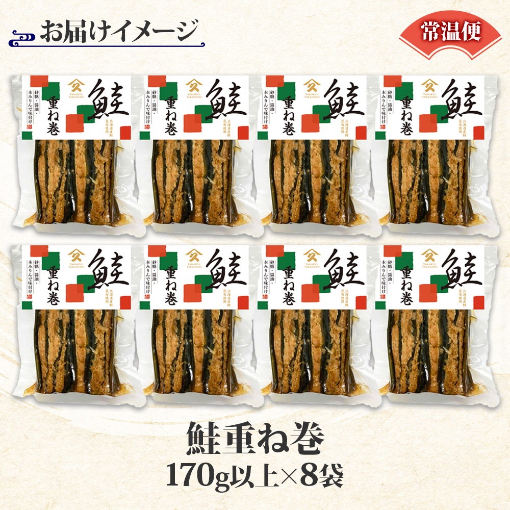 さけ重ね巻 170g以上 8袋 鮭 さけ サケ シャケ 昆布 こんぶ 昆布巻 煮物 国産 お酒 お供 惣菜 おかず 人気 和食 ごはんのおとも ご飯のお供 ギフト お酒の おつまみ お取り寄せ グルメ 送料無料 常温 タカハシ食品 北海道 函館市