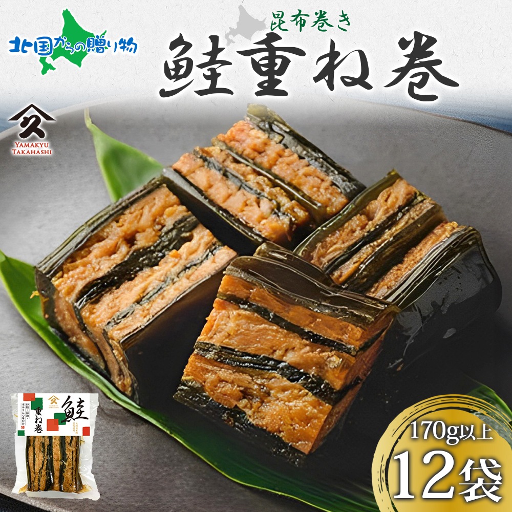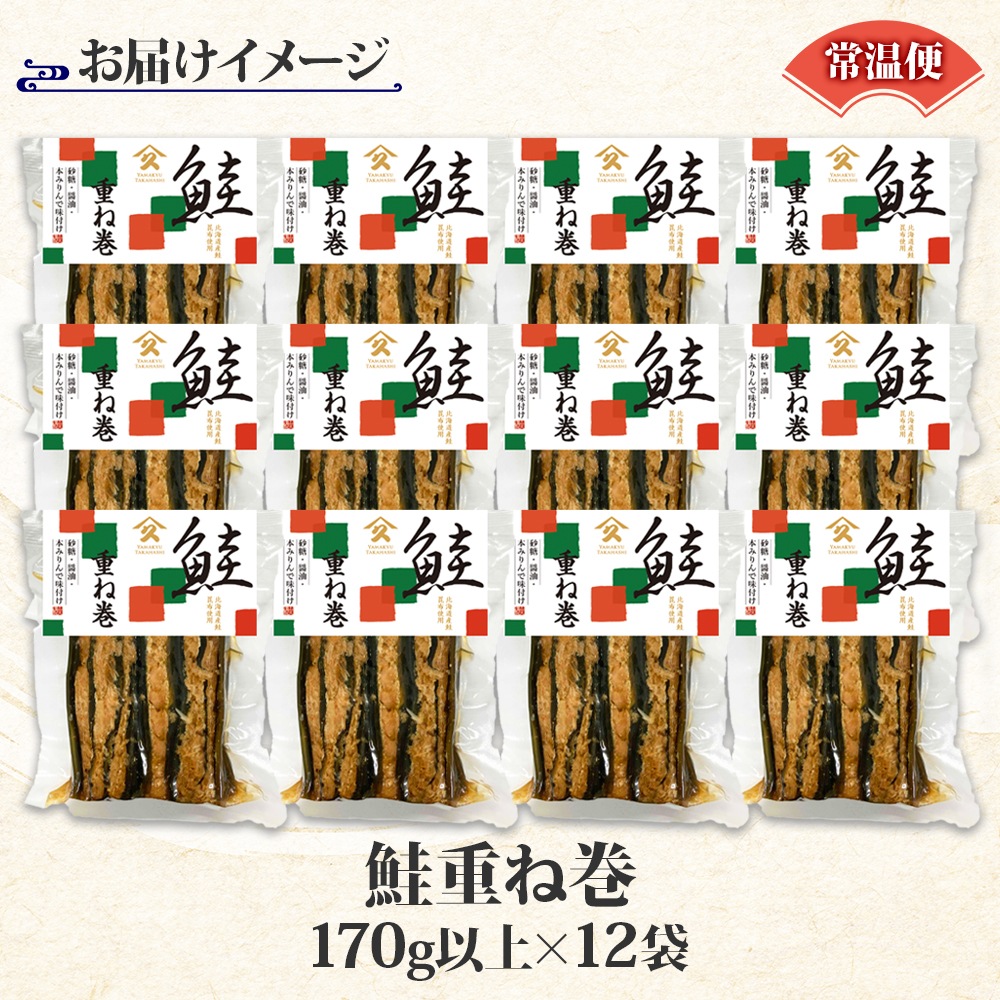 さけ重ね巻 170g以上 12袋 鮭 さけ サケ シャケ 昆布 こんぶ 昆布巻 煮物 国産 お酒 お供 惣菜 おかず 人気 和食 ごはんのおとも ご飯のお供 ギフト お酒の おつまみ お取り寄せ グルメ 送料無料 常温 タカハシ食品 北海道 函館市