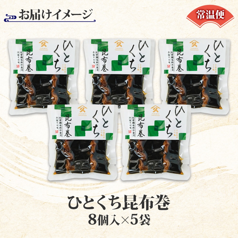 一口昆布巻 8個入り 5袋 昆布 こんぶ 昆布巻 干ぴょう 佃煮 煮物 国産 お酒 お供 惣菜 おかず 弁当 人気 和食 ごはんのおとも ご飯のお供 ギフト お酒の おつまみ お取り寄せ グルメ 送料無料 常温 タカハシ食品 北海道 函館市