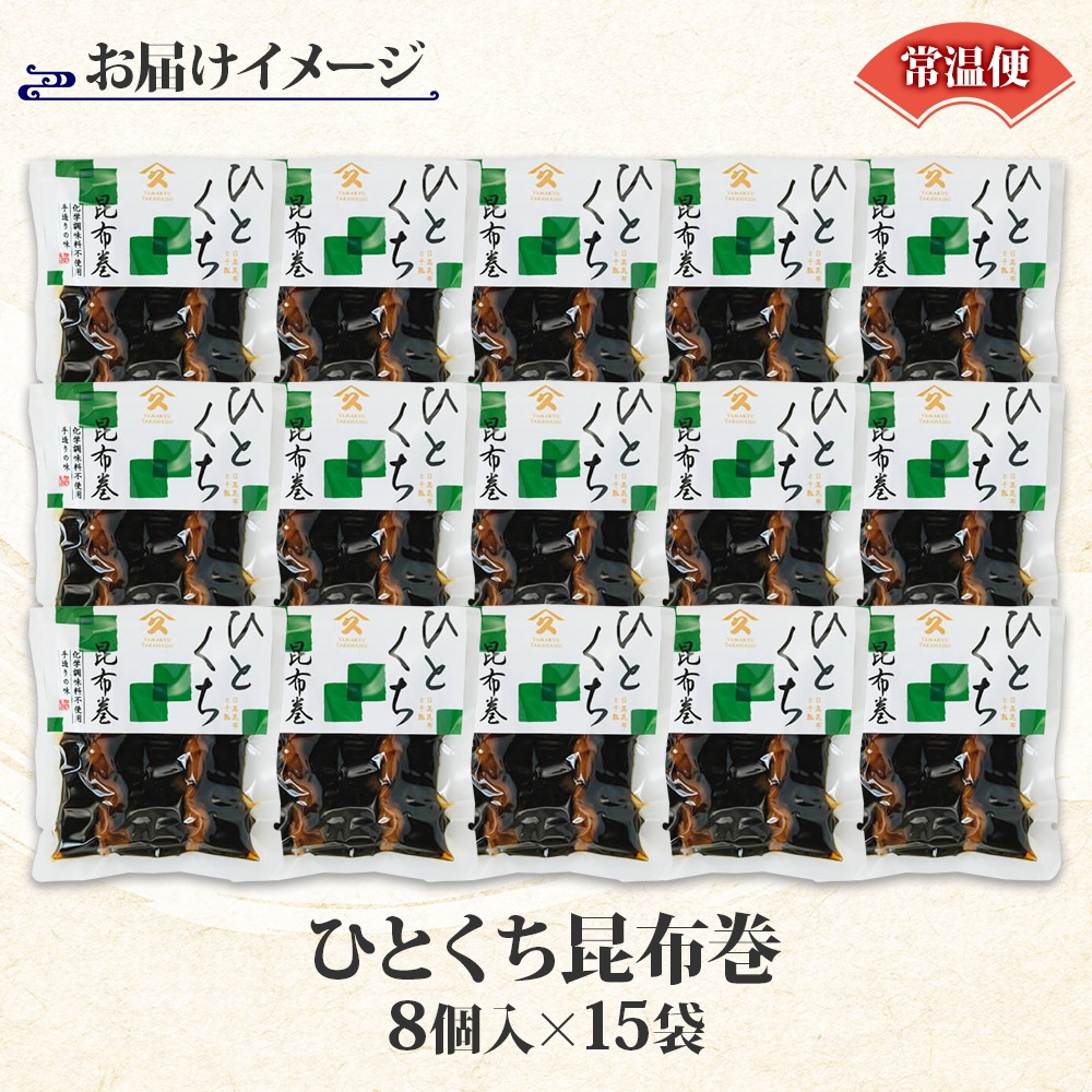 一口昆布巻 8個入り 15袋 昆布 こんぶ 昆布巻 干ぴょう 佃煮 煮物 国産 お酒 お供 惣菜 おかず 弁当 人気 和食 ごはんのおとも ご飯のお供 ギフト お酒の おつまみ お取り寄せ グルメ 送料無料 常温 タカハシ食品 北海道 函館市