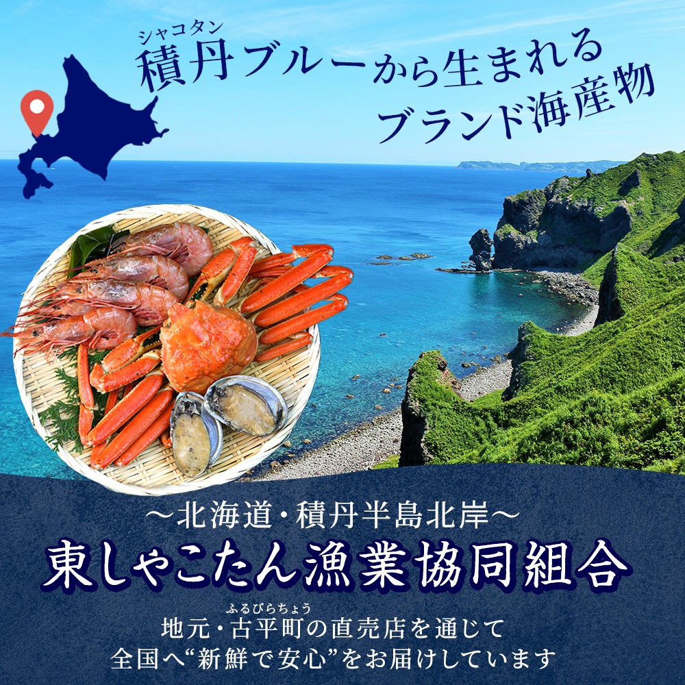 東しゃこたん漁港組合から直送される新鮮な魚介類を急速冷凍で鮮度キープ。