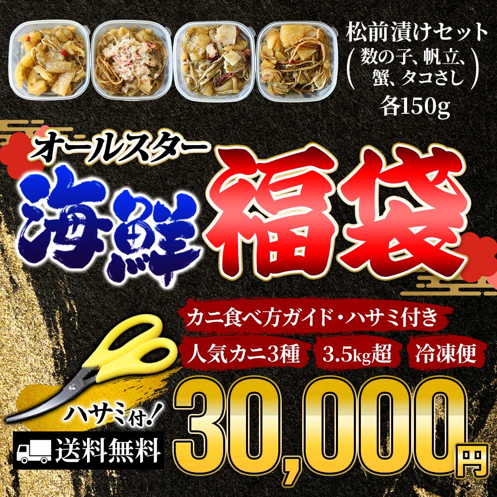 海鮮オールスター福袋3万円 北海道海鮮セット ズワイガニ姿500g ズワイガニ足800g 毛蟹 花咲蟹 いくら 魚卵 松前漬け 豪華12品 海鮮福袋 2025福袋 カニ ギフト お取り寄せ グルメ カニ福袋 年末 年始 お取り寄せ お正月 グルメ 取り寄せ 送料無料