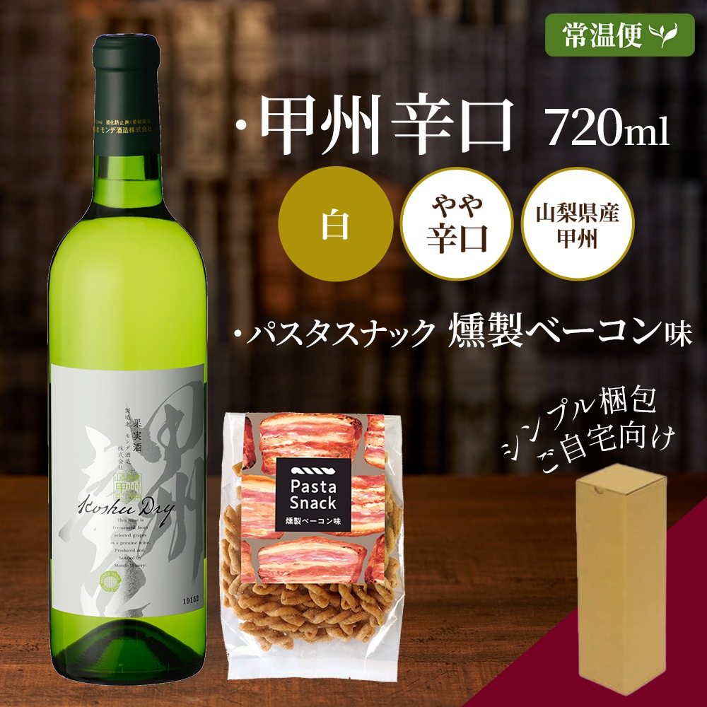 大人の晩酌セット 甲州辛口1本 720ml&パスタスナック(塩味/トマト味/ベーコン味/黒コショウ味) お歳暮 ワイン おつまみ セット ギフト ワイン ギフト 白ワイン プレゼント 送料無料 誕生日プレゼント 内祝い ワイン おつまみ ギフト